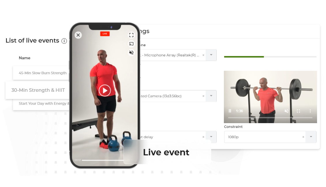 Live stream your workouts and coaching sessions, and deliver in-class experience to your clients at home. Your clients will be able to access live stream directly from your app.