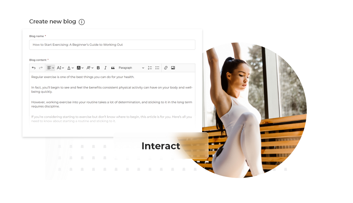 Your clients want a unique and personalized experience. Write blog posts on health and wellness, fitness mindset and motivation, publish your vlogs and share quick workout tips.