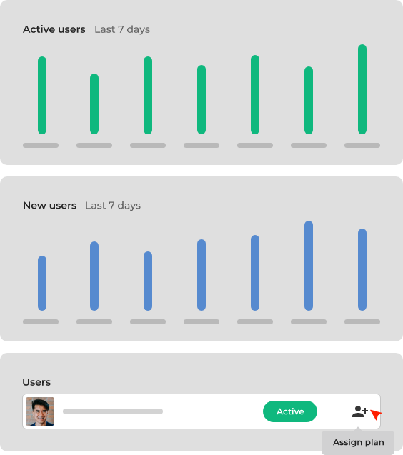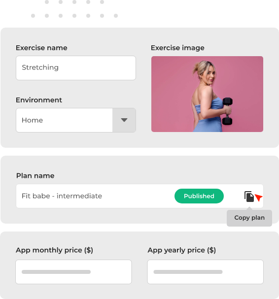Create custom training and diet plans for different goals and various skill levels. Assign tailor-made plans to clients to create a more personalized workout experience.